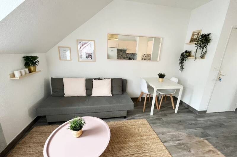 Appartement de charme situé au 2eme étage d'une copropriété avec ascenseur. Tout le logement est situé de plain-pied. 4 personnes peuvent séjourner dans l'appartement (une chambre + canapé convertible dans le salon). Vous apprécierez ce bel appartement de 39 m2 pour l'emplacement à 3 min de l'hyper centre à pieds (restaurants, cinéma, boulangerie, etc...).